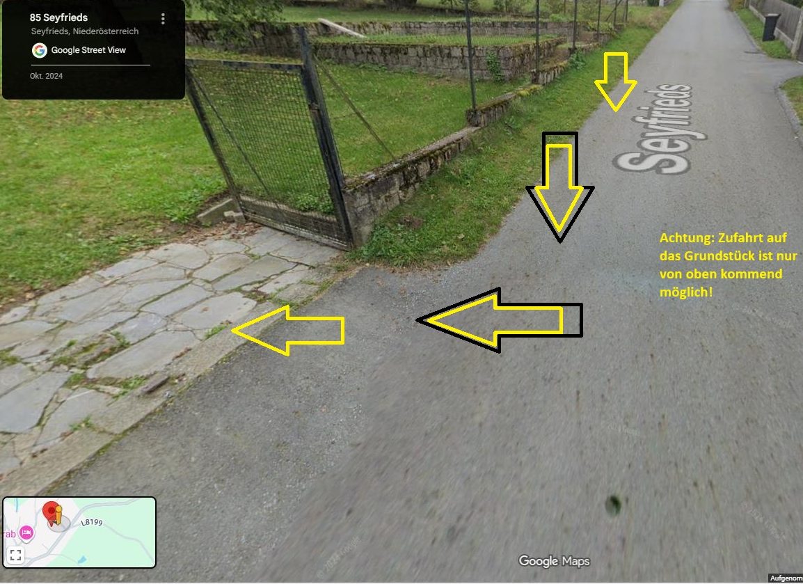 Bitte beachten Sie, dass die Zufahrt auf das Grundstück aus baulichen Gründen nur von oben kommend (bergab fahrend) möglich ist. Anderweitig besteht bei Fahrzeugen mit geringer Bodenfreiheit die Gefahr des Aufsetzens. Der Vermieter haftet für keine Schäden!